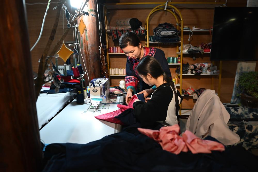 李利(后)正在贵州省兴义市万峰林景区门店内乱取职工一同造做平易近族衣饰(2025年2月19日摄)。新华社记者 刘绝 摄 兼顾:吴炜玲 编导:赵世芸 记者:赵小帅、夏鹏、崔晓强 配音:胡函专 新华社音瞅频部造做